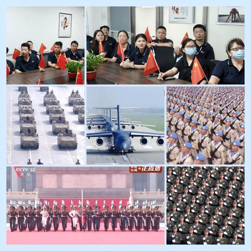 湖南盟德立制冷设备有限公司全体员工齐聚会议室,共同观看了这场气势恢宏、意义深远的阅兵盛典,接受了一场深刻的爱国主义精神洗礼。