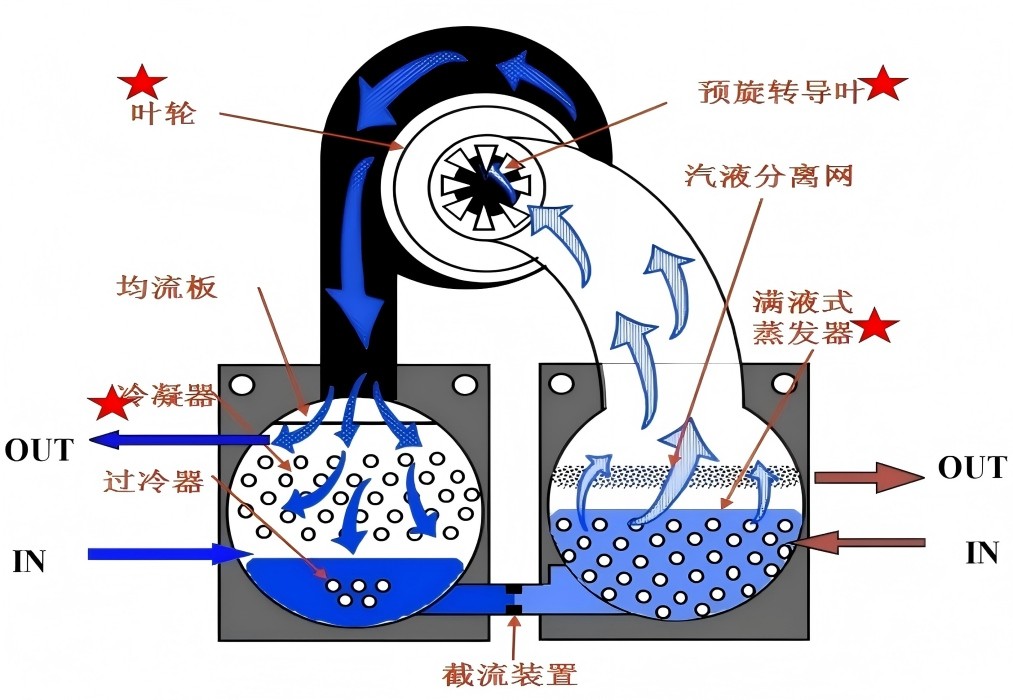 当制冷剂通过孔板时,它会经历突然的截面积减少,这导致流速增加,同时压力急剧下降,这种现象称为节流效应。压力的突然降低促使制冷剂从高压液态转变为低压气态或两相混合态,准备在蒸发器中进一步蒸发,吸收周围环境的热量。